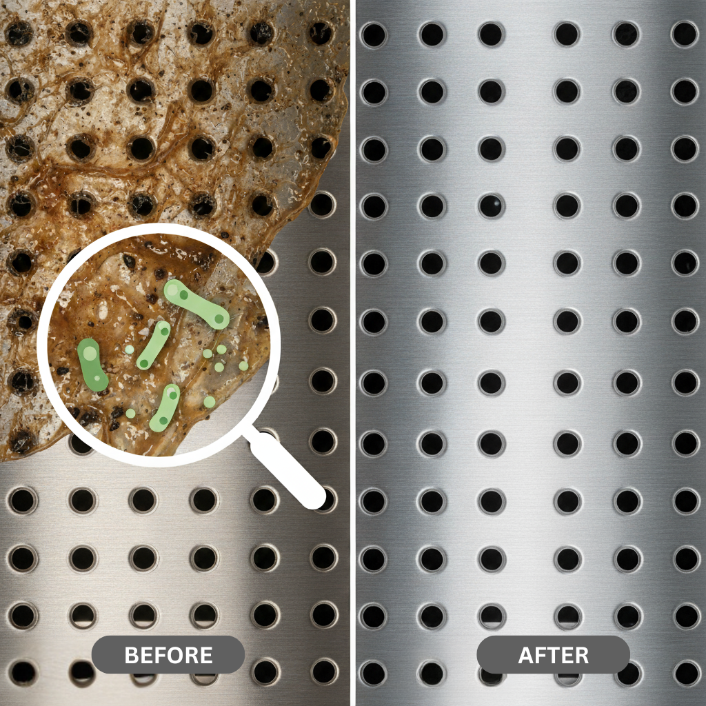Our advanced enzyme formula dissolves pet protein and biofilm in areas you can't reach: inside the drum, behind the gasket, and throughout the drain system.